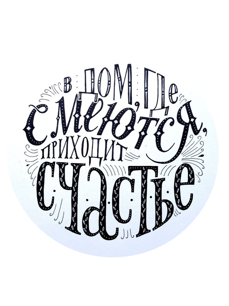 Слова и целые предложения своим рисунком создают простые формы. Как правило, это горизонтальный прямоугольник или вытянутый ромб, иногда – вытянутый вертикально овал. И если вам кажется, что ваш леттеринг смотрится не так гармонично, как вам бы того хотелось, попробуйте добавить деталей и довести его композицию до определенной формы.