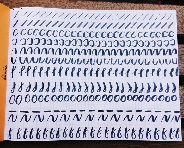 В этом долгожданном труде Д. И. Петровского собран огромный пласт информации по кириллическому и латинскому письму ширококонечным пером. В начале книги рассказано об инструментах и материалах, подготовке рабочего места. Далее по каждому виду письма автор дает историческую справку и свои прописи. Из древнерусских почерков подробно рассмотрены ранний и поздний уставы, полуустав, скоропись и вязь. Прописи даны на миллиметровой бумаге с описанием последовательности и способа начертания всех знаков. Также есть краткая справка по надстрочным знакам в тексте.