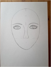 Нарисуйте ровный овал лица. Вспомогательные линии сместите немного влево.