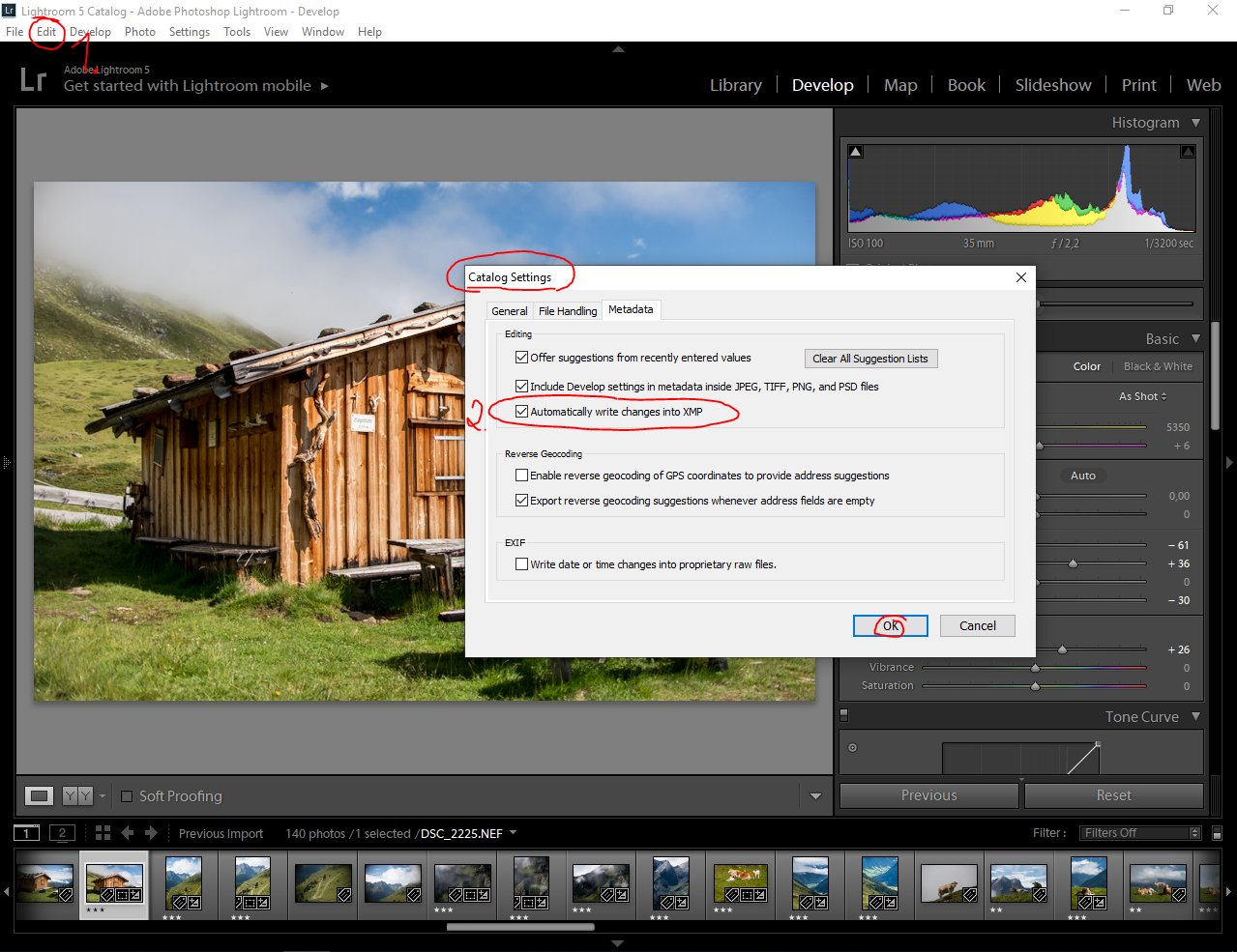 Скорее всего, вы увидите пятна пыли на фотографиях с большим количеством неба на заднем плане или белыми участками. Фотографии с большим количеством деталей, как правило, скрывают любые пятна пыли до такой степени, что их невозможно обнаружить. Тем не менее, проверить не помешает. Откройте фотографию в Adobe Lightroom и перейдите в окно «Разработка». Вы можете просто выбрать его в своей библиотеке и быстро нажать «D» на клавиатуре.