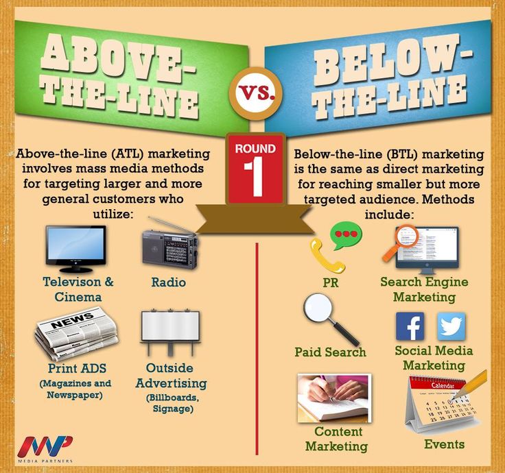 Понятия ATL (above the line – «над чертой») и BTL (below the line – «под чертой») появились в середине прошлого века. Они описывают два разных подхода к рекламе и продвижению.