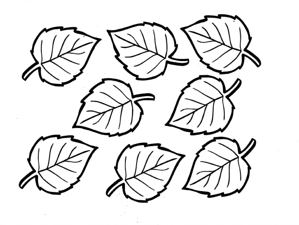 Распечатываем, вырезаем и кладем на цветную бумагу. Обводим и опять вырезаем. Так делаем все необходимые нам листья для аппликации.