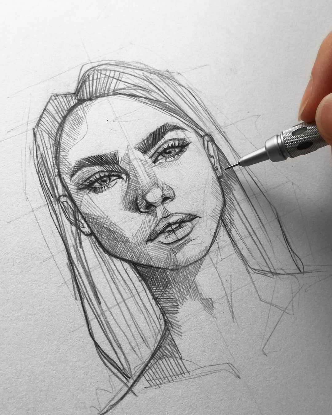 Эскизы лица — это прекрасное выражение эмоций, которые можно передать с помощью лица, таких как счастье, горе, удивление, шок, застенчивость и высокомерие, помимо некоторых других. Тем не менее, художникам также есть над чем поэкспериментировать: от набросков лица с более абстрактным ощущением , например, лиц, закамуфлированных за счет сопутствующих трещин и нерегулярных линий на странице эскиза, и увеличенных эскизов с акцентом на частях лица, таких как глаза, уши, волосы и даже декольте.
