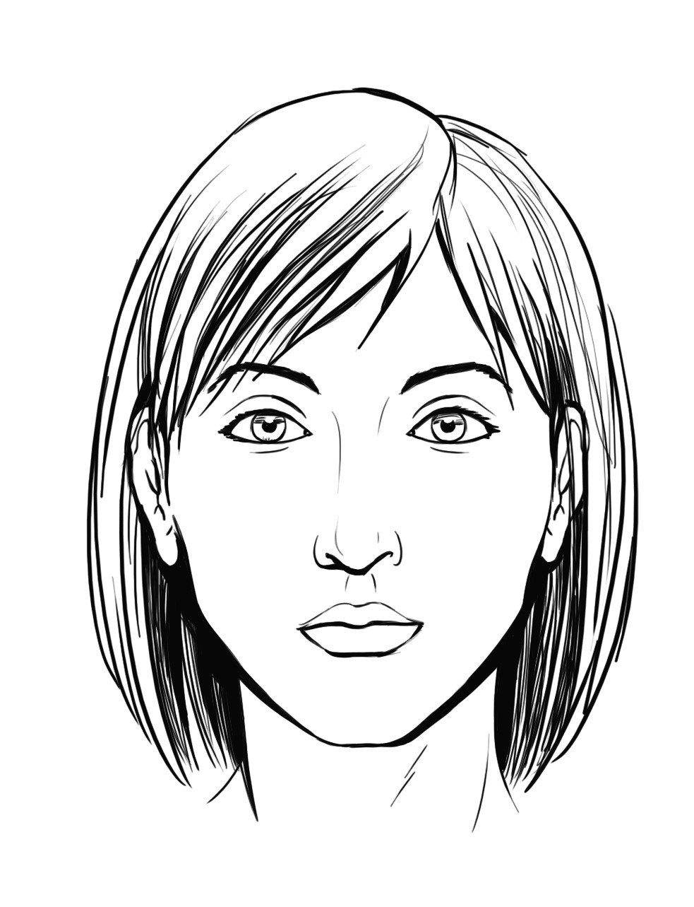 Чтобы правильно и красиво передать мимику лица, эмоции, тени нужно создать эскиз, и по нему проводить параллели, соответствующие уровням глаз, бровей, носа и губ.