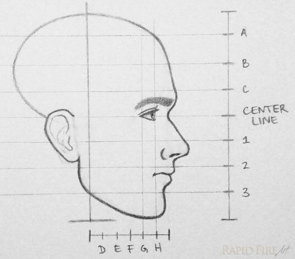 Схема пропорции головы человека в профиль