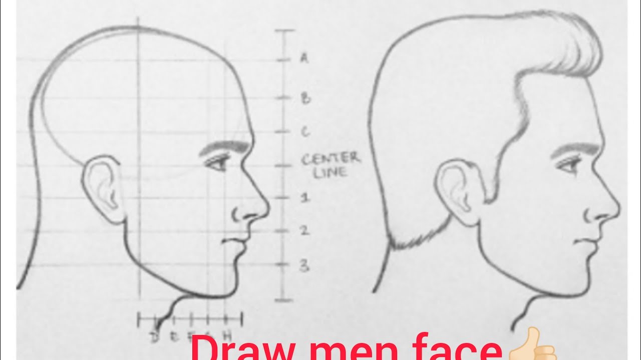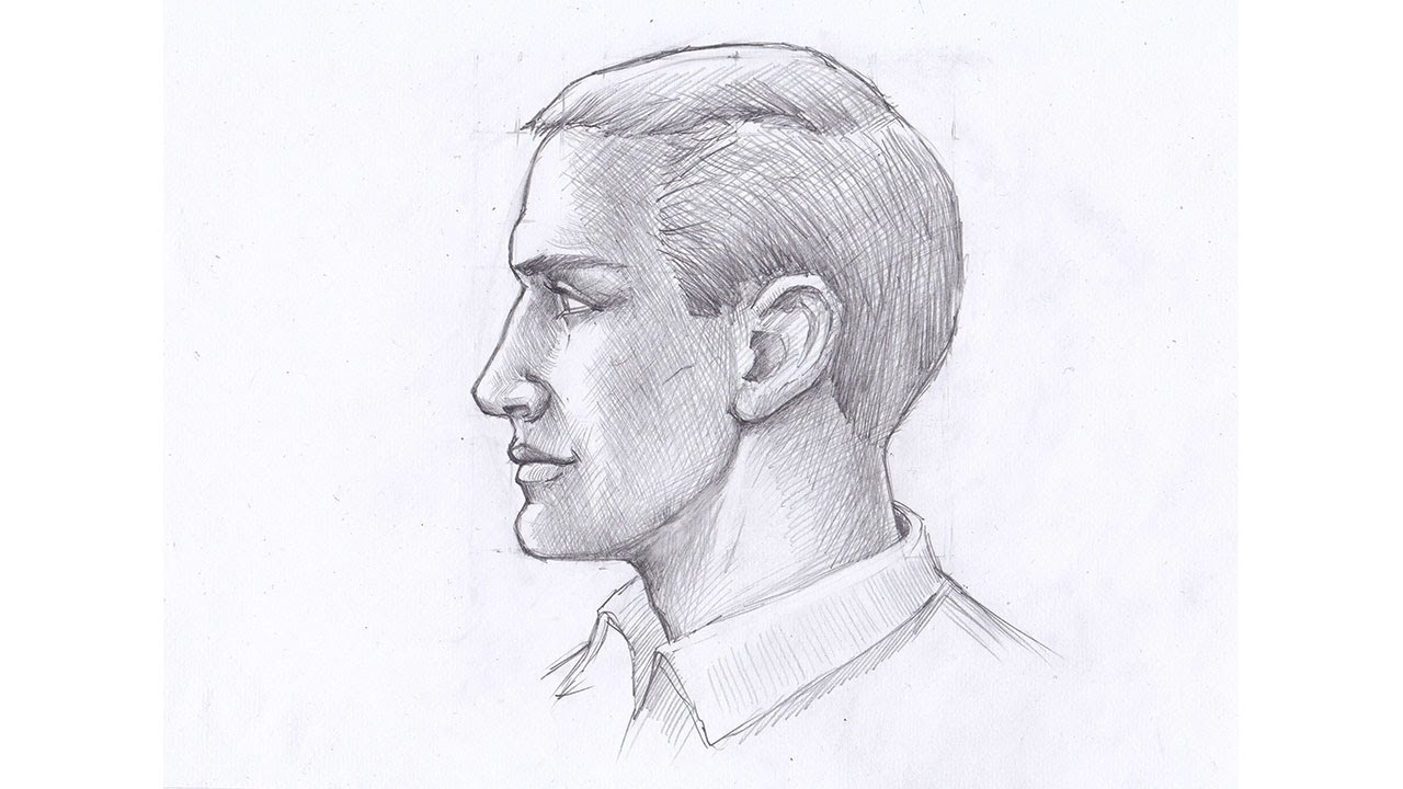 Пошаговые инструкции по рисованию мужского лица в профиль сбоку