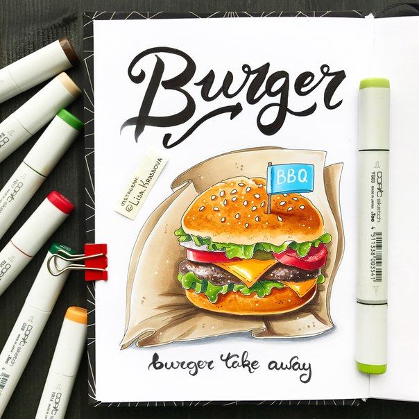 Лиза Краснова, еще одна художница, которая занимается подпиской в Instagram, использует маркеры для одной из своих самых распространенных сильных сторон: рукописного письма. Гибкость и манипулируемость маркерами делают их удобным инструментом для создания надписей.