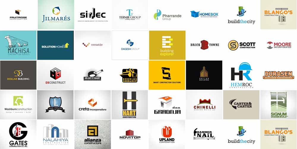 Большинство логотипов для строительства в подавляющем большинстве отдают предпочтение абстрактным значкам, часто с использованием прямых или кривых линий, которые напоминают структуру, инструменты, напоминающие дороги, движение.