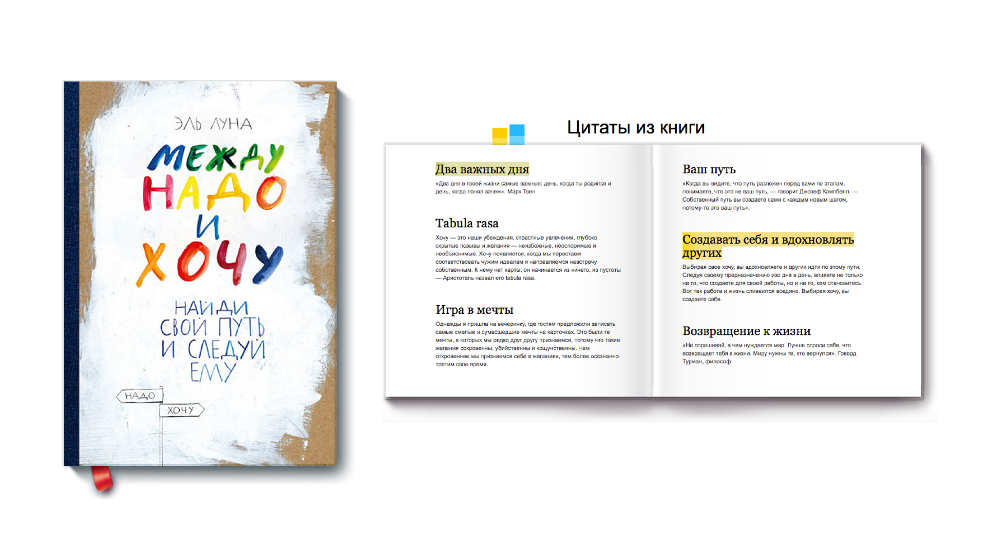 Кто из нас не задавался вопросом: «Как мне найти свое истинное призвание?» Эль Луна характеризует его как перекресток между «надо» и «хочу». «Надо» — это то, что мы должны делать, как нам кажется, или что от нас ожидают другие. «Хочу» — то, о чем мы мечтаем в глубине души.
