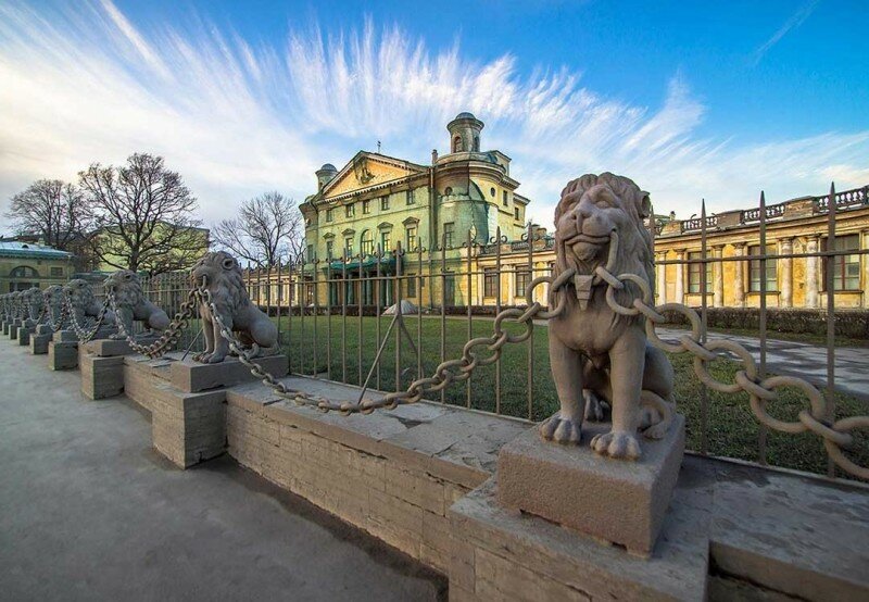 За оградой с орнаментальными металлическими воротами открывается вид на дворец, как будто перенесённый с берегов Сены или Луары.