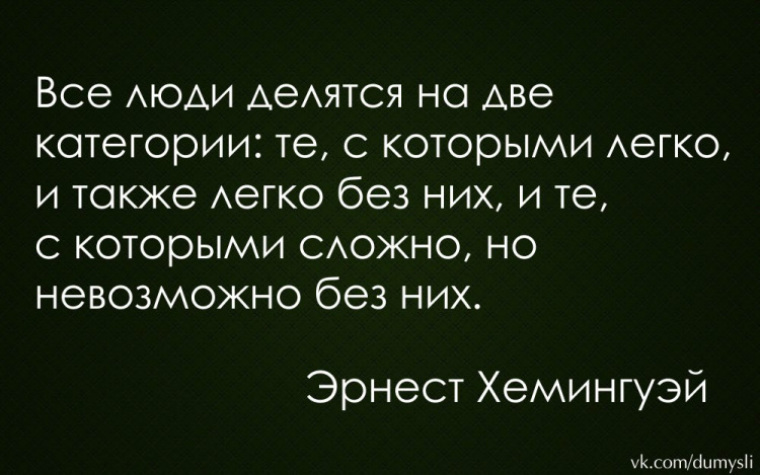 Эрнест Хемингуэй цитата: Все люди делятся на две категории: те, с которыми легко, …