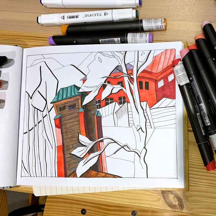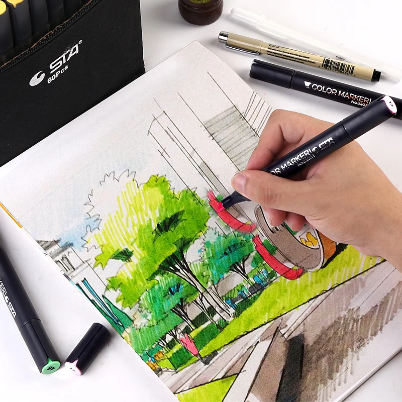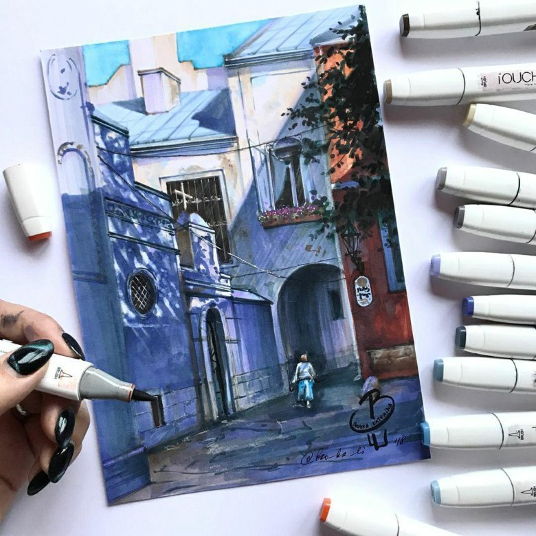Все художники нашли применение фломастерам. Поскольку они просты в использовании и быстро сохнут, маркеры отлично подходят для работы на природе или на открытом воздухе — идеально подходят для путешествий, пленэрных исследований или городских зарисовок. Благодаря легкому нанесению цвета маркеры хорошо подходят для рисования, черчения и рисования жестами. Маркеры также могут плавно смешиваться, что делает их способными к фотореализму, абстракции и всему промежуточному!