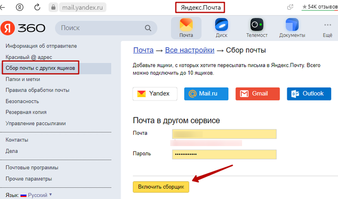 Шаг 3. Введите данные для входа в учетную запись Яндекс Почты и войдите в панель.