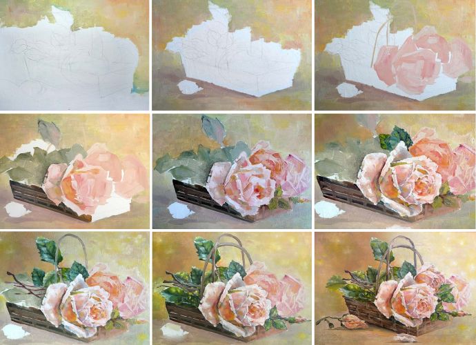 Когда пишешь маслом, необходимо ждать сутки, пока не высохнет слой, прежде чем приступать к новому.