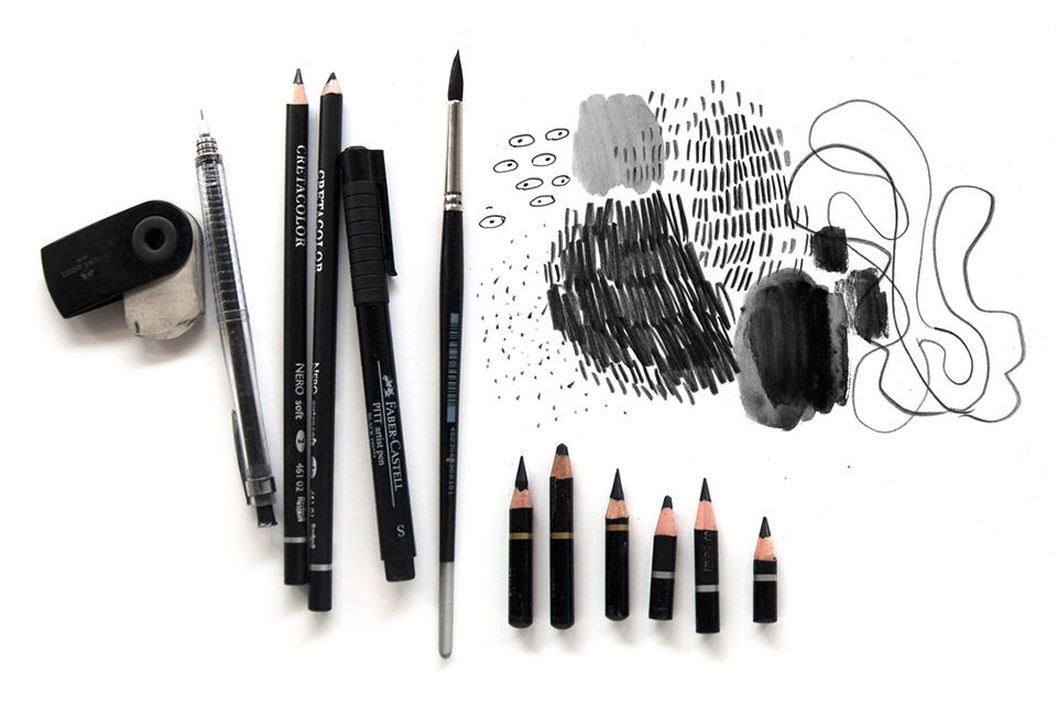 - Карандаш – универсальный материал, подходящий и для быстрых зарисовок, и для отрабатывания навыков ровного штриха, и для больших картин.