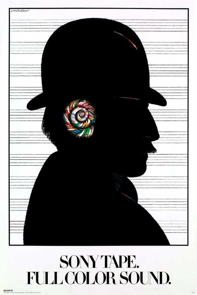 Плакат Dog. Милтон Глейзер, для компании Olivetti, 1969 год. Плакат Sony Tape Full Color Sound. Милтон Глейзер, 1979 год