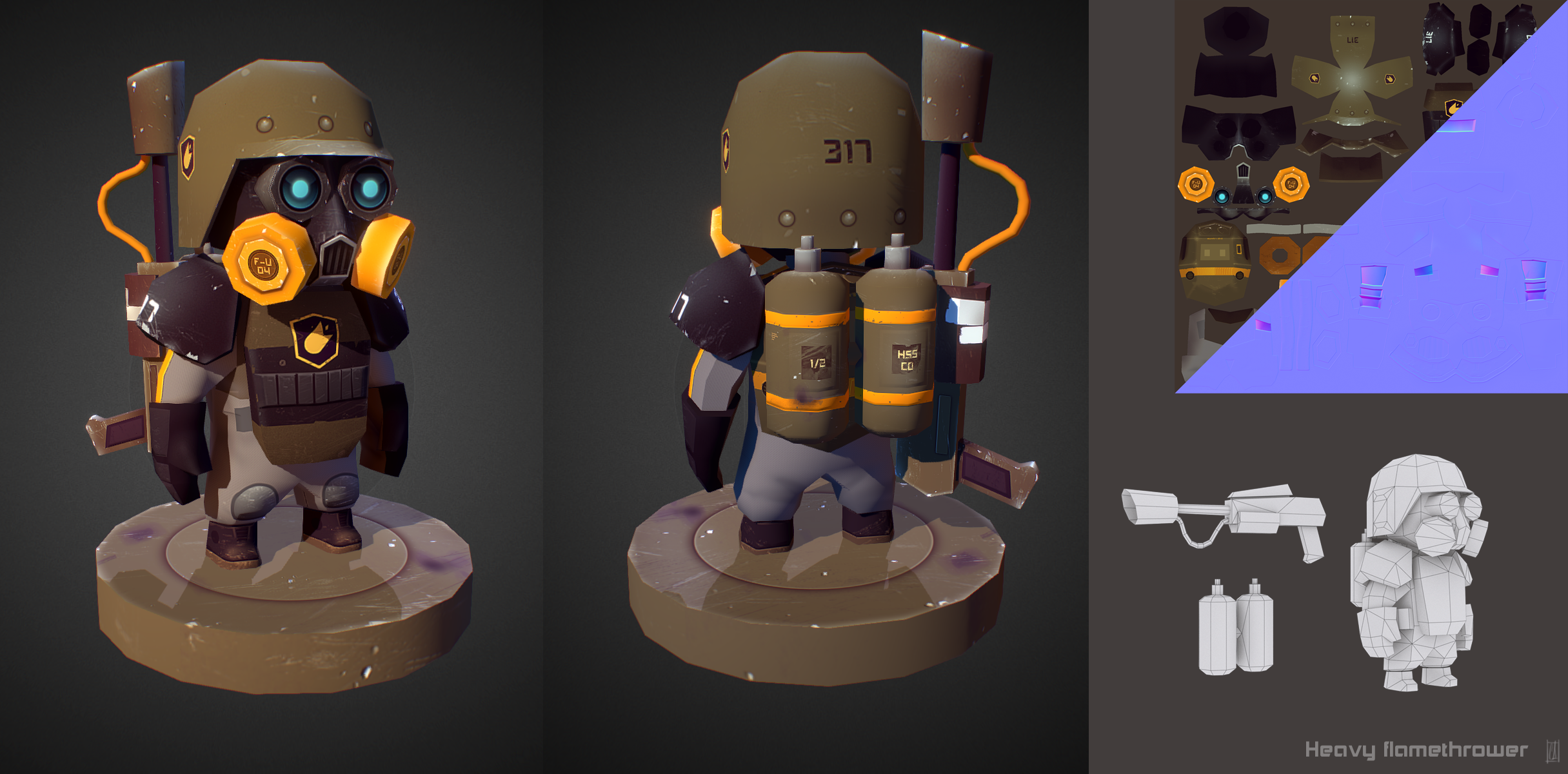 Так в общем виде выглядит мой процесс дизайна низкополигональных персонажей. Иногда я пропускаю этап базового скульпта и просто начинаю с куба или чего-то подобного; это быстрее, хоть и сложнее.