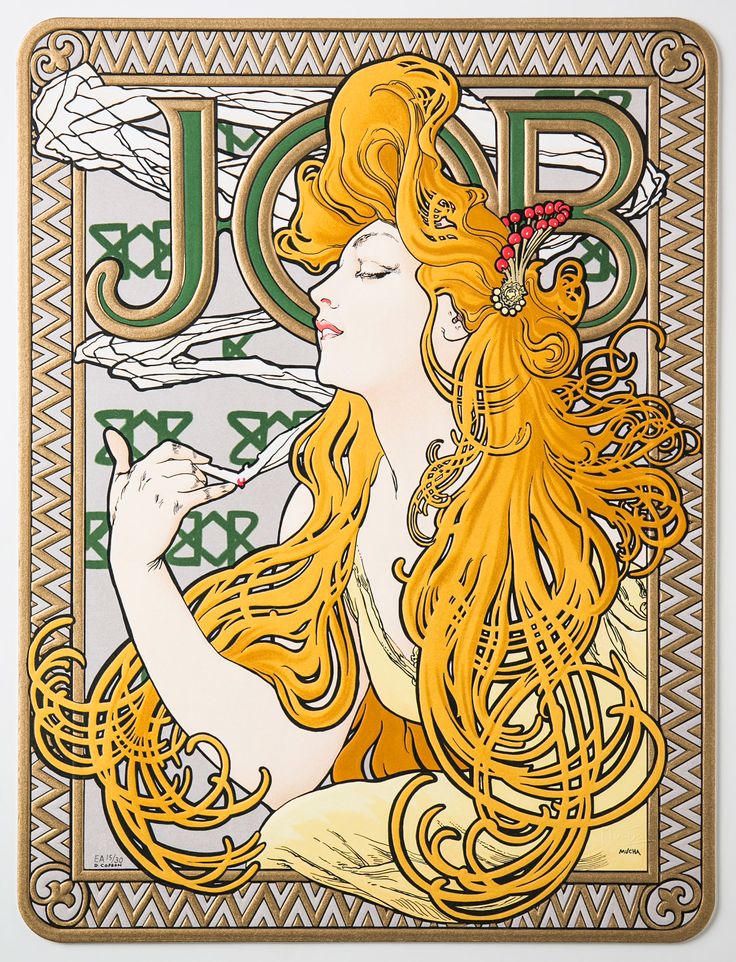Он организовал в плотные композиции роскошные декоративные элементы, вдохновленные византийским и исламским дизайном, стилизованные надписи и извилистые женские формы. Как и многие другие дизайнеры того времени, Муха впервые получил публичное уведомление о дизайне плакатов, но он также получил комиссионные за обложки журналов, упаковки, оформление книг, рекламные материалы и даже почтовые марки. Таким образом, роль и сфера деятельности графического дизайна неуклонно расширялись на протяжении всего периода.