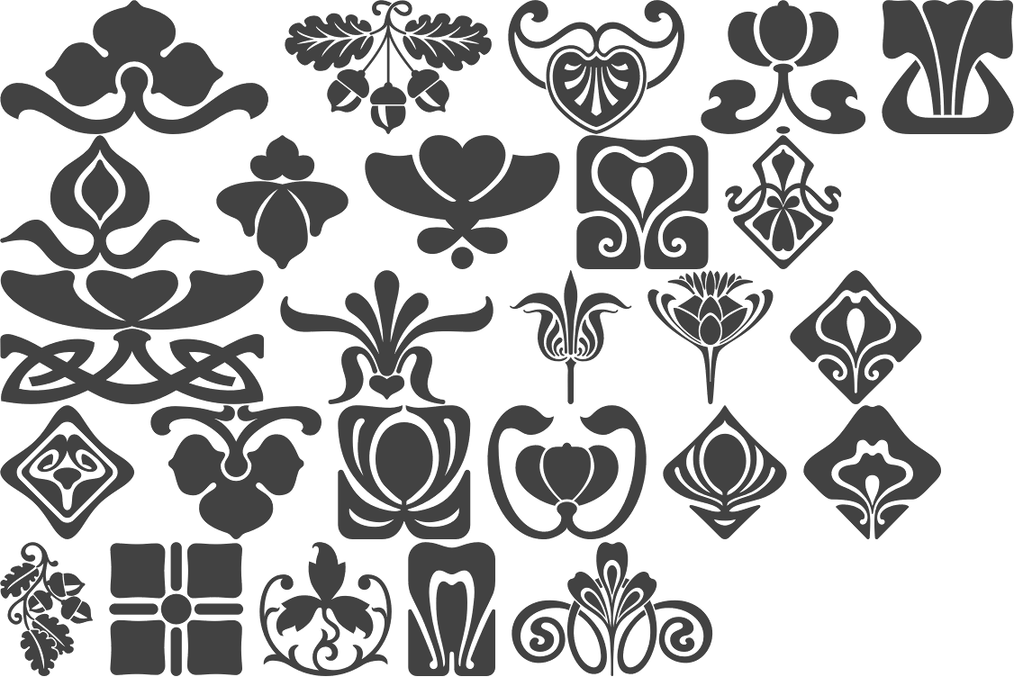 Коллекция картинок: орнамент в стиле модерн. Коллекция картинок: орнамент в стиле модерн узоры в стиле барокко, идеи для аппликаций,