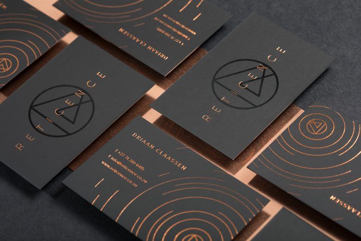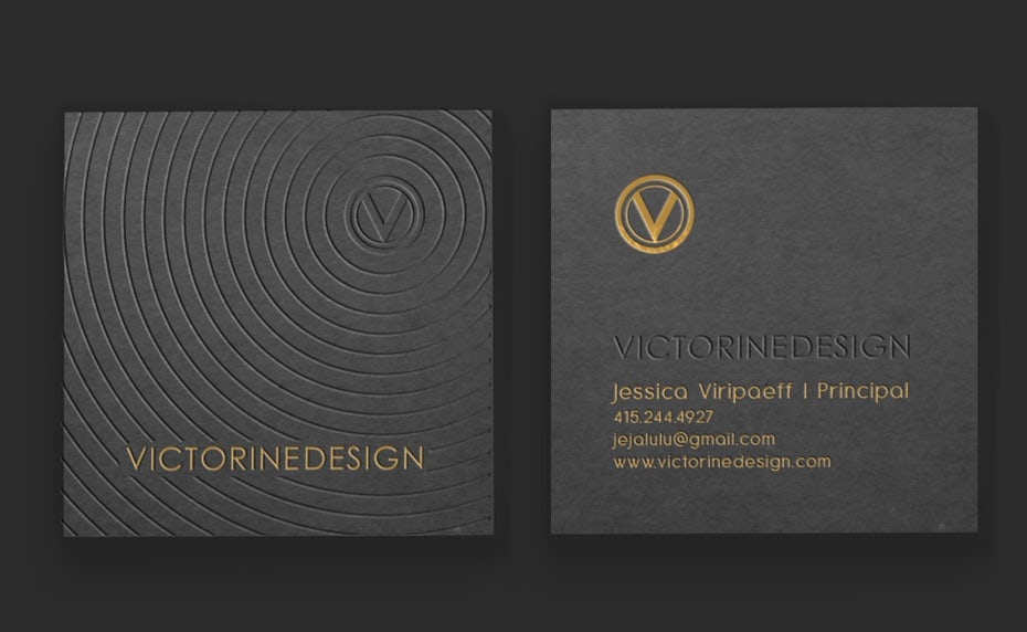 Еще одна захватывающая тенденция 2020 года — визитные карточки с гравировкой, текст и логотипы которой располагаются выше или ниже поверхности карты. Эти дизайны придают визитным карточкам глубину, визуально добавляя третье измерение плоскому предмету.
