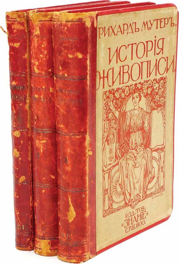 История живописи в XIX веке. Перевод З. Венгеровой.В семи выпусках. Тт. 1-3. Издание Товарищества «Знание»СПб.: Типография М.Д. Рудометова, Типография общ. Е. Евдокимов, 1899-1901. С многочисленными иллюстрациями в тексте, в том числе полностраничные, и на отдельных листах. [Т.1]. 1899. [4], VI, [2], 353, IV с.: ил., 9 л. ил.; Т.2. 1900. [4], 484, [2] с.: ил., 4 л. ил.; Т.3. 1901. [4], 462, [2] с.: ил., 4 л. ил. Каждый том в иллюстрированном цельнотканевом (коленкор) издательском переплете. Типографская ошибка в названии при тиснении золотом на корешке (т.1) у небольшой части тиража. 27,5х19 см.