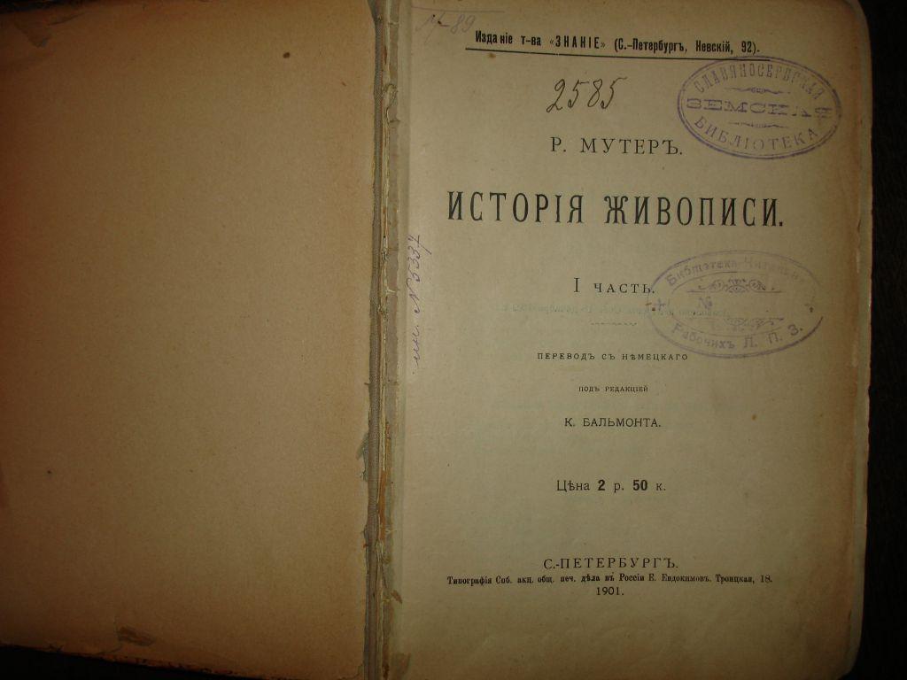 Весной 1893 года в Петербург пришел из Мюнхена первый том издания Мутера «Geschichte der Malerei im XIX Jahrhundert».