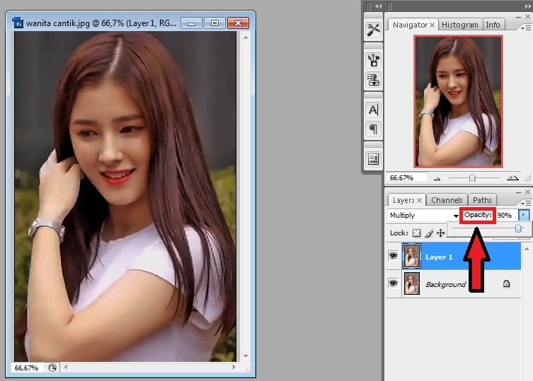 • Умножение — просмотр информации о цвете в каждом канале и умножение основного цвета на смешанный цвет. Результирующий цвет всегда более темный. Умножение любого цвета на черный дает черный цвет. Когда вы рисуете цветом, отличным от черного или белого, последовательные штрихи с помощью инструмента рисования создают все более темные цвета, создавая эффект, аналогичный рисованию на изображении несколькими волшебными маркерами.