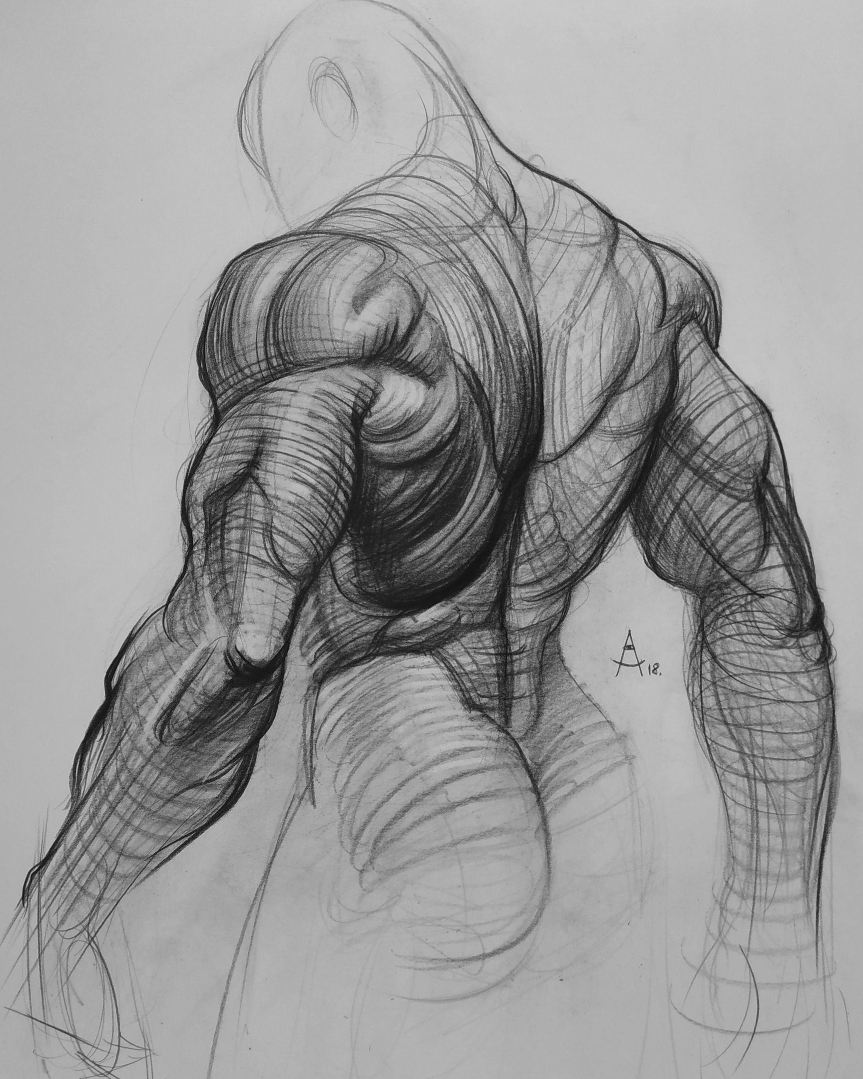 То есть, рисуя человека сзади, Вы помните о пропорциях, которые были использованы при построении человека спереди. И точно так же работаете с мышцами, помня, что некоторые мышцы начинаются спереди, а продолжаются сзади.
