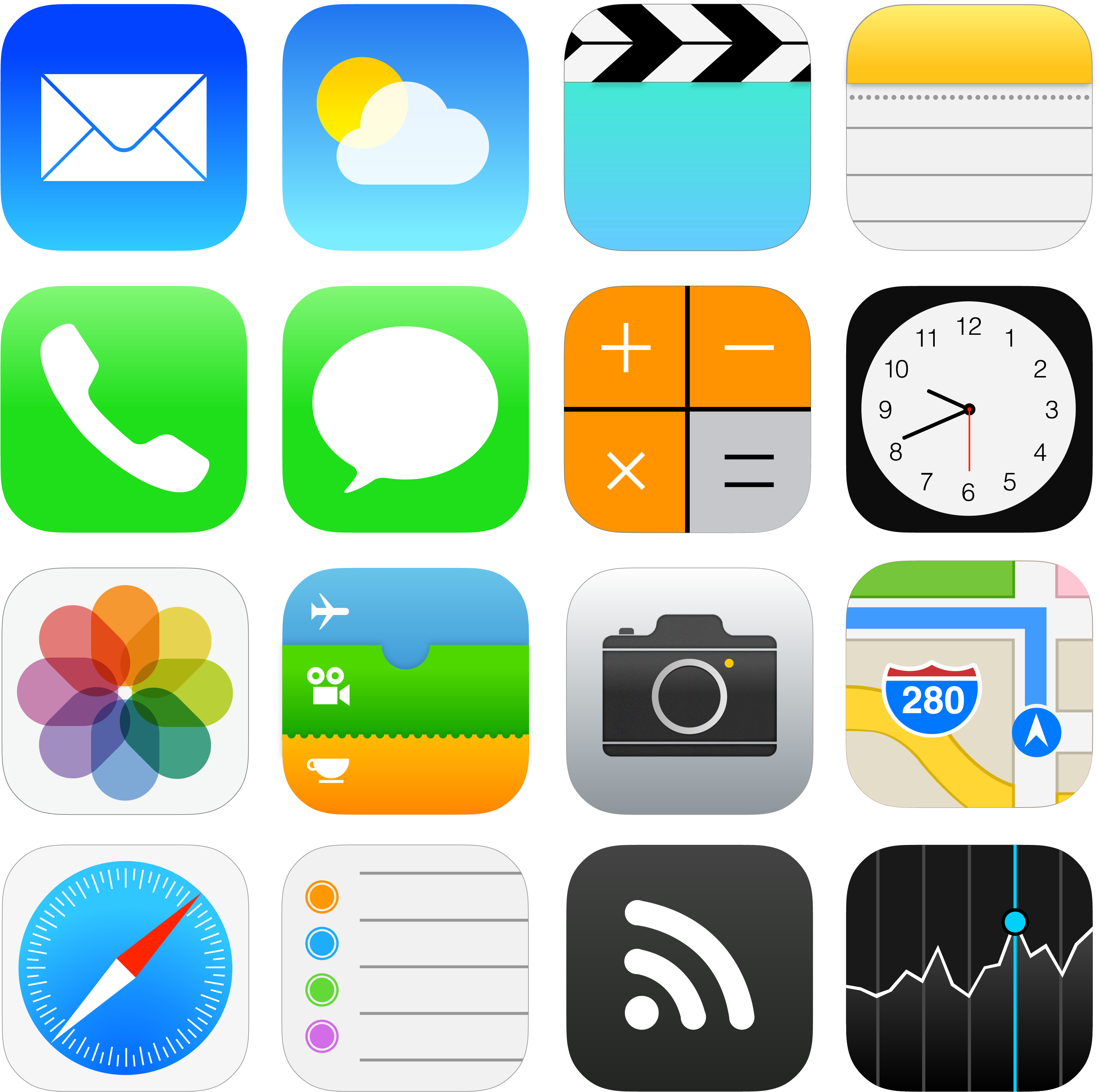 Но, конечно, Apple тоже не сразу к этому пришли. Например, иконки и другие элементы интерфейса стали суперэллипсами только в начиная с iOS 7.