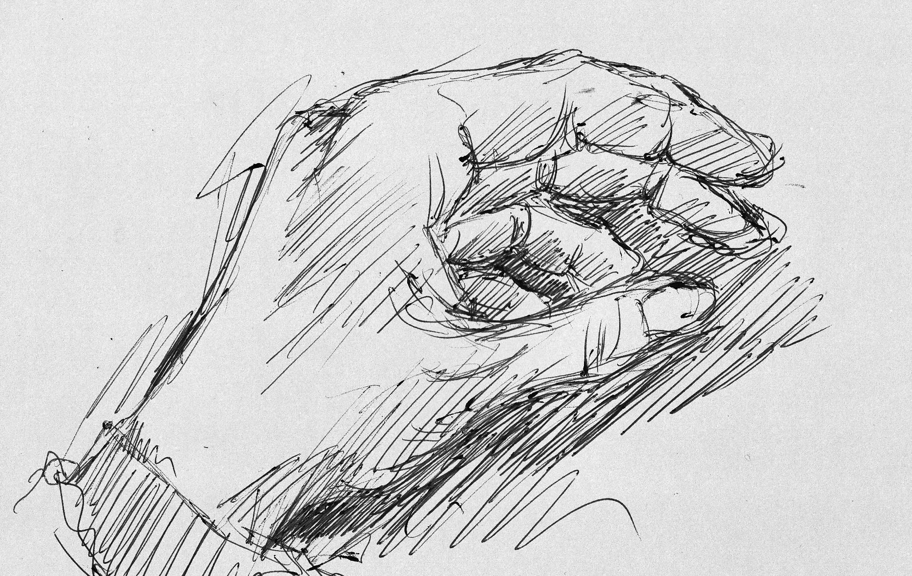 Следуя изложенному выше, способ избежать заполнения вашего эскиза деталями состоит в том, чтобы просто предложить детали, такие как текстура, в выбранных областях эскиза, человеческий глаз заполнит пробелы. .