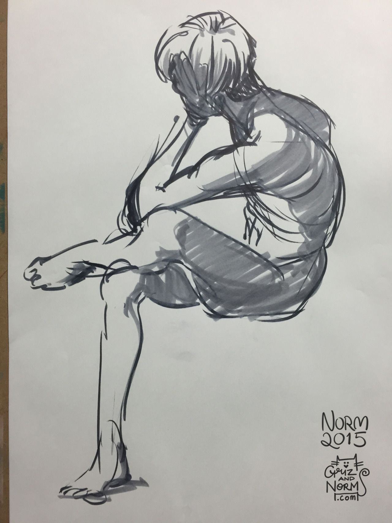 Время от времени я брал серый маркер Tombow (похожий на этот, также на Amazon), чтобы я мог сделать несколько быстрых штриховок, чтобы сделать набросок более динамичным. На одном конце у него кисточка, а на другом — зубило. Я полагаю, что это действительно две ручки в одной, теперь я думаю об этом!
