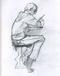 Здесь я хочу отметить необходимость и длительного рисунка, набросок и рисунок как бы помогают друг другу. После длительных рисунков в скетчах появляется большая проработанность, подробность, мастерство и знания.
