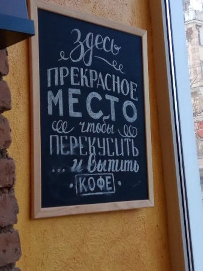 Кроме меню, мелками выполняют оригинальные надписи, пишут шутки, загадки и просто дурачатся. Если остроумных идей не возникает, на помощь приходит Интернет, где можно найти огромное количество различных цитат на тему выпивки, любви, еды и жизни.