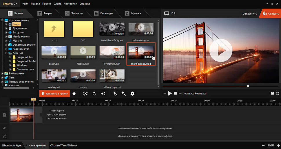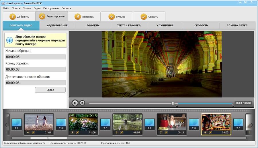 Динамический контент демонстрирует ваши продукты, привлекает широкую аудиторию и позволяет предоставить зрителям достаточную информацию. И так, чего же ты ждешь? С помощью этого видеоредактора вы можете добавлять фотографии к видео, редактировать и создавать клипы и длинные фильмы без ограничений. На их качество это не повлияет — скачивайте и используйте по своему усмотрению.