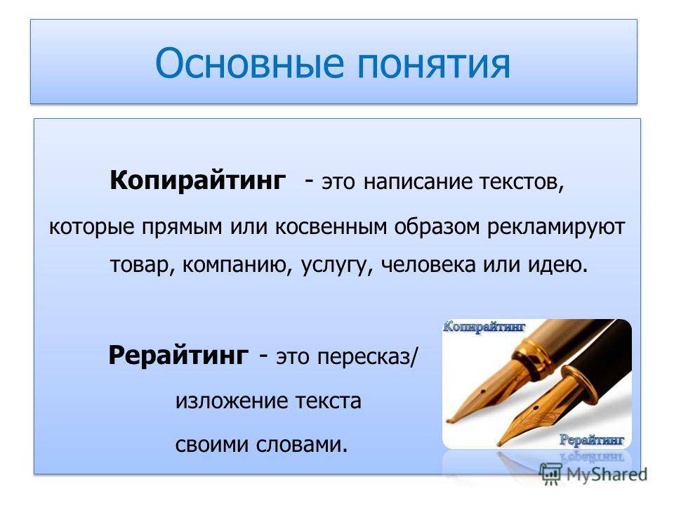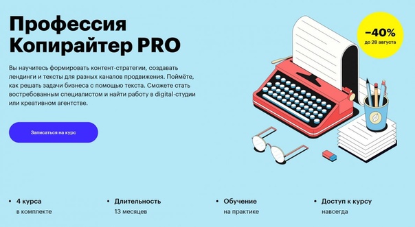 Профессия копирайтерОбщее наименование всех людей, профессионально занимающихся написанием оригинальных коммерческих текстов. В древние времена, когда это еще была штатная единица, копирайтер был универсальным солдатом писчего фронта. Сидя в офисе на зарплате, строчил для корпорации «Рога унт копыта» все, что содержало буквы (опционально цифры). Сегодня это лендинг, завтра — коммерческие предложения, через неделю копирайтер, как синеокий Кощей чахнет над креативным слоганом…