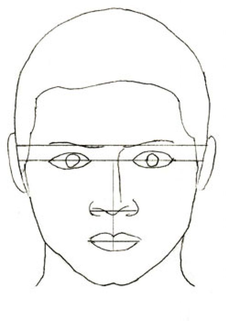 Затем проведите вертикальную линию ровно посередине будущего лица.