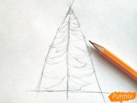 3. Теперь добавьте еще два ряда ветвей ели. Причем в каждом последующем ряду ветвей добовляется на одну больше. Таким образом 1 ряд — три ветви, 2 ряд — четыре ветви, 3 ряд — пять ветвей.