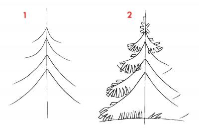Первый способ. Начиная с остова и дорисовывая потом елку: