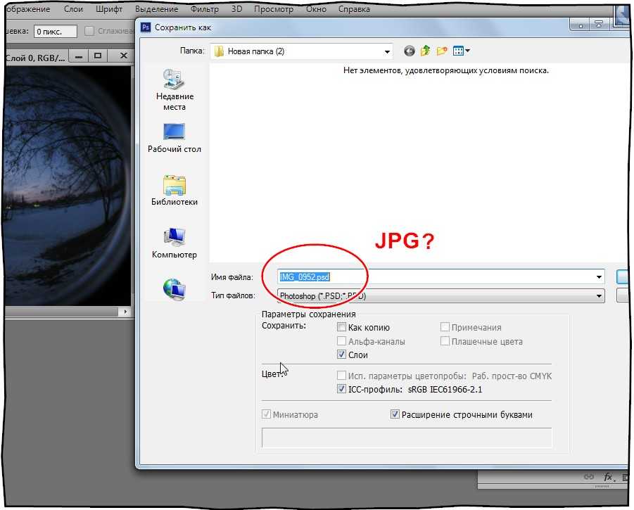 Сохранение файла в формате JPEG
