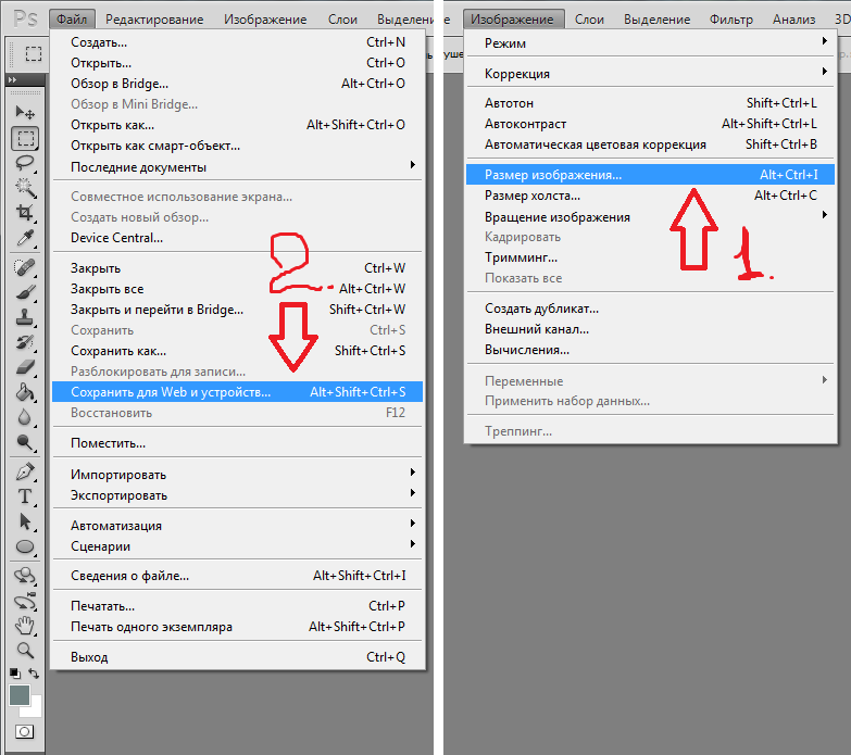 Итак, чтобы сохранить картинку в фотошопе используются две команды меню:
