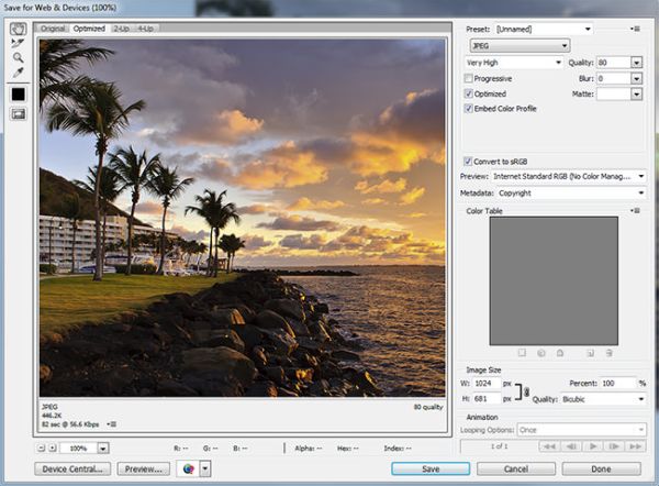 Если у файла есть слои, отобразится диалоговое окно Сохранить для Web . Дополнительные сведения о параметрах сохранения приведены в разделе Диалоговое окно «Сохранить для Web».