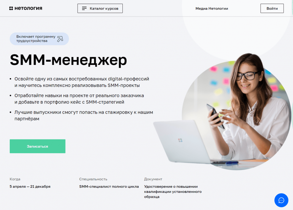 Крупнейший онлайн университет Нетология был основан в 2009 году. Обучает студентов по специальностям: интернет-маркетолог, web-дизайнер, SMM-менеджер и SEO-специалист. За 11 лет работы обучение прошли более 10000 человек.