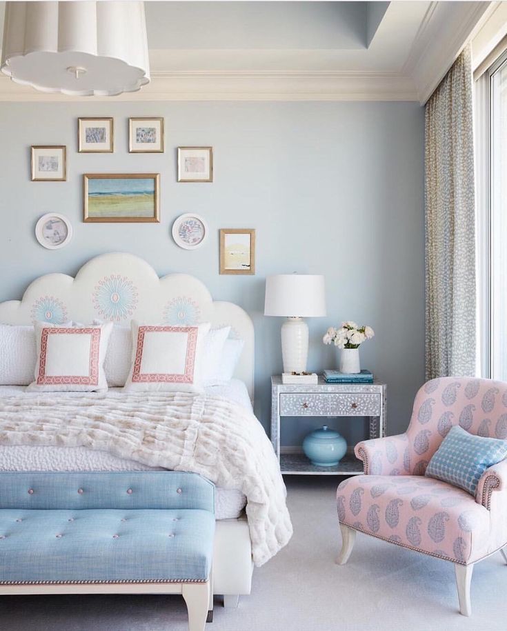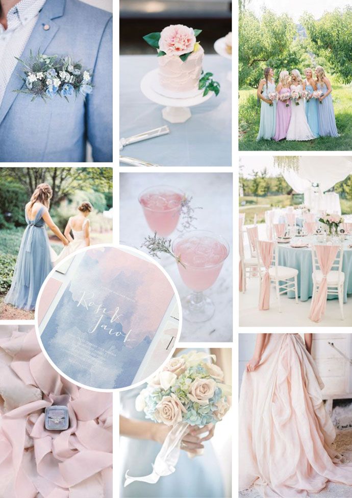 По-мнению экспертов, бледно-розовый и спокойный голубой можно сочетать с полутонами таких цветов, как: зеленый, фиолетовый, коричневый, бледно-желтый и серебро.