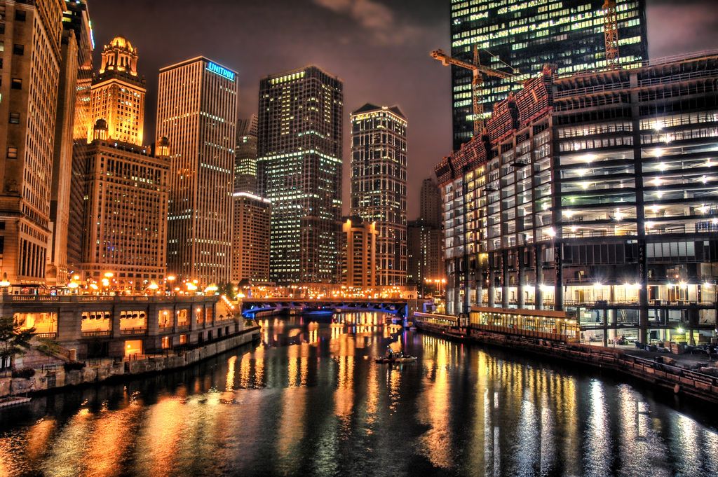 Ночной Чикаго панорама