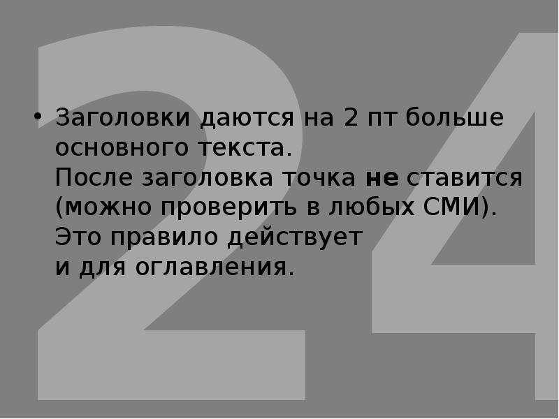 В современной русской печати в конце заголовка употребление точки не принято. Это положение узаконено специальными пособиями и справочниками для корректоров и редакторов; сошлемся хотя бы на последний такой по времени: «Точку в рубрике (заголовке. – Б. Ш.), вынесенной в отдельную строку, опускают, за исключением изданий для начинающих читать детей (напр., в букваре), чтобы не мешать закреплению стереотипа, в конце предложения надо ставить точку… Остальные [написано рукой автора: конечные] знаки препинания (многоточие, восклицательный, вопросительный знаки) сохраняют» (Справочная книга редактора и корректора.