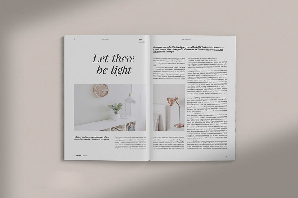 Мокап разворота журналаМокапы журналов не всегда изобилуют сложными визуальными эффектами, сочными цветовыми сочетаниями или притягивающими взгляд деталями. Как правило, белые, минималистичные, аккуратные шаблоны могут показаться скучными и слишком простыми. Но не делайте поспешных выводов!