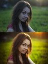 Это изображение «до» слишком холодное, на мой взгляд, и нет достаточного разделения между волосами модели и фоном. Я также выровняю тон её кожи и добавлю немного блеска к её глазам. По мере того как вы работаете над изображением, играйтесь со слайдерами, чтобы видеть, какие эффекты они применяют.