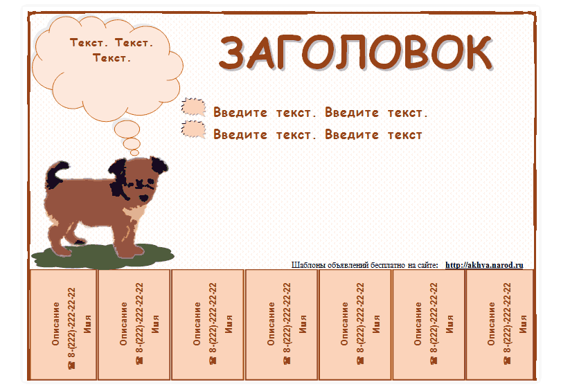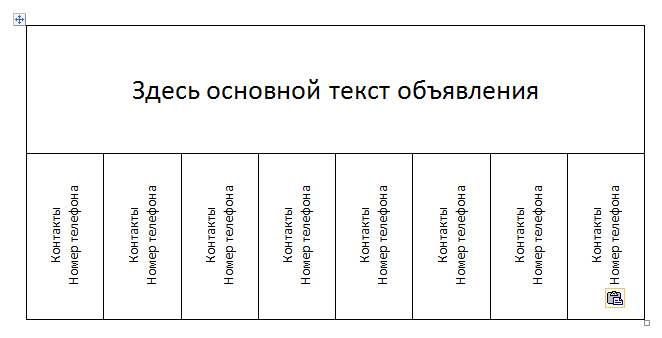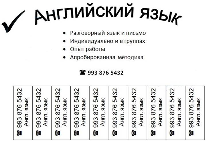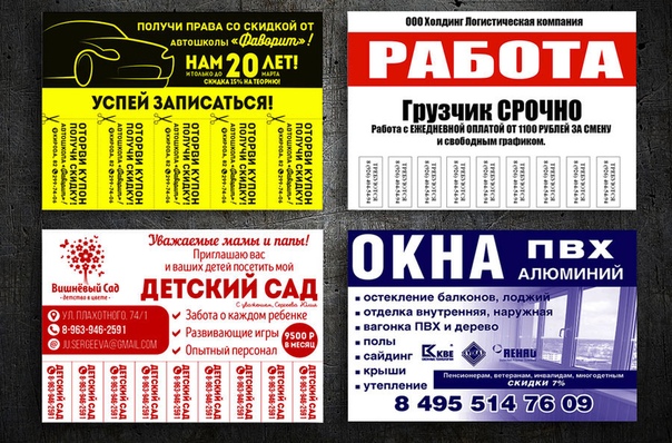 - Обязательно используйте специальные отрывные «корешки» с контактной информацией. Не всем возможным клиентам удобно записывать ваши данные. Их не должно быть слишком много: на самом большом листе А4 достаточно шесть отрывных «лопушков» с подробной контактной информацией.