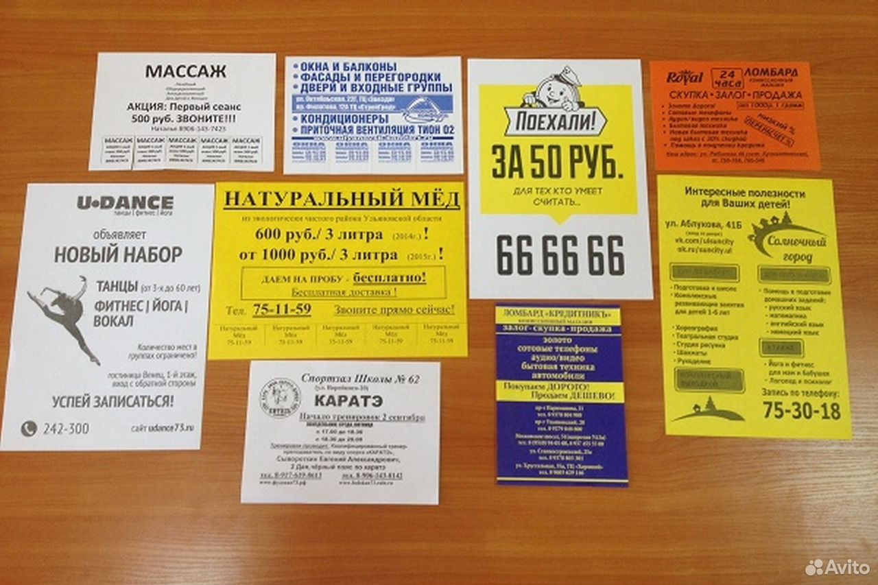 - Стоит помнить: чем больше будет тираж, тем меньше стоимость отдельного объявления. Если вы планируете длительную рекламную кампанию, в типографии нужно сделать заказ на максимальное количество объявлений, которые будут использоваться. Стоимость одного объявления в маленьком тираже может отличаться от большого в разы.