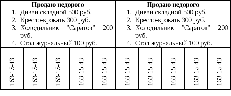 - Лучше всего, если объявления будут напечатаны на неплотной бумаге. Идеальный вариант – воспользоваться газетной.